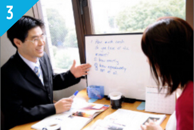 生徒様の目標及び現時点でのレベルを把握するため、個別カウンセリングを行います。 カウンセリング結果に基づき、生徒様それぞれに合わせた30分の体験レッスンを受講して頂きます。